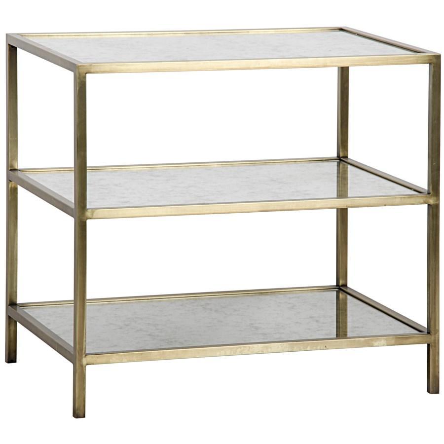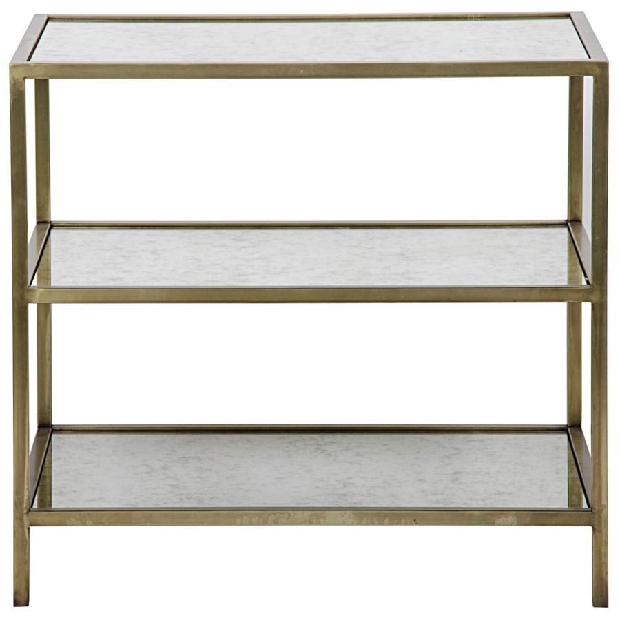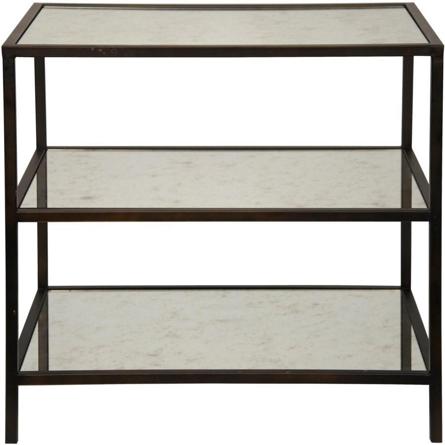 Antiqued mirror shelves and an antique brass or black metal finish make this side table an attractive accent table for your living or dining room.