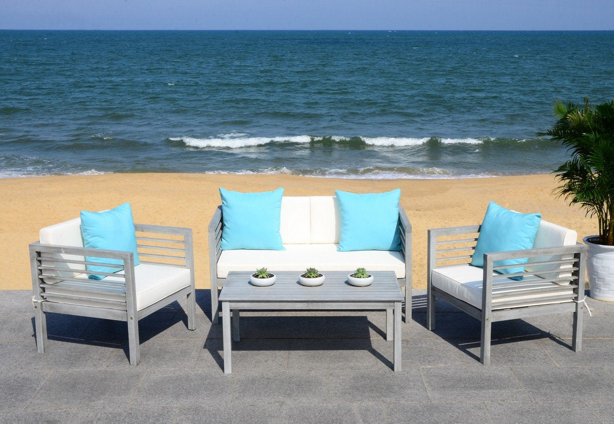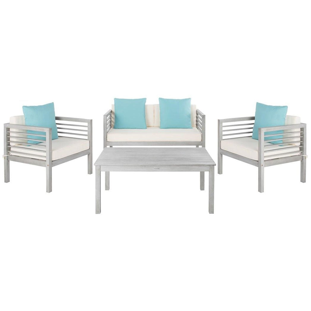 Alda 4 Piece Outdoor Set with Accent Pillows - Grey Wash/White/Light Blue