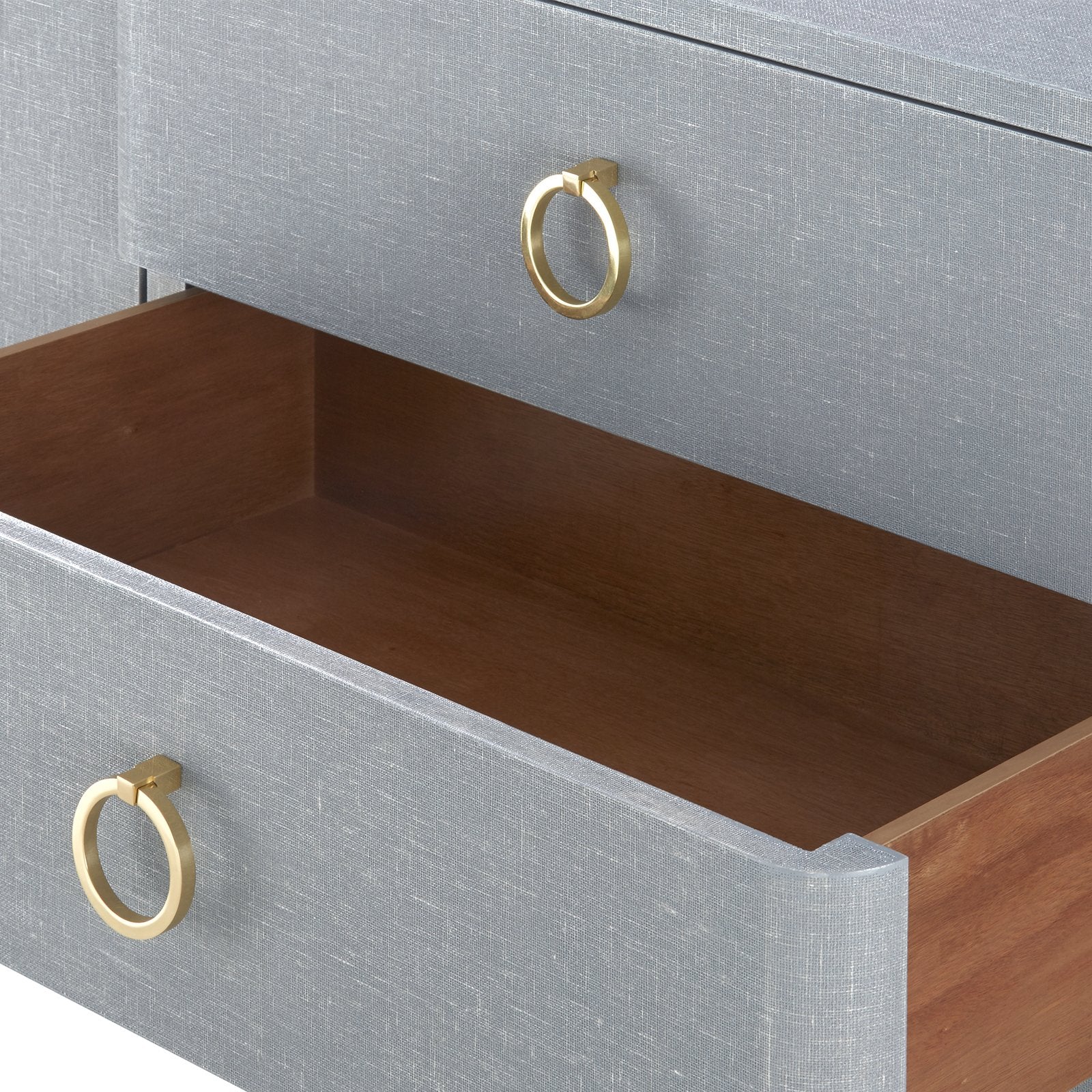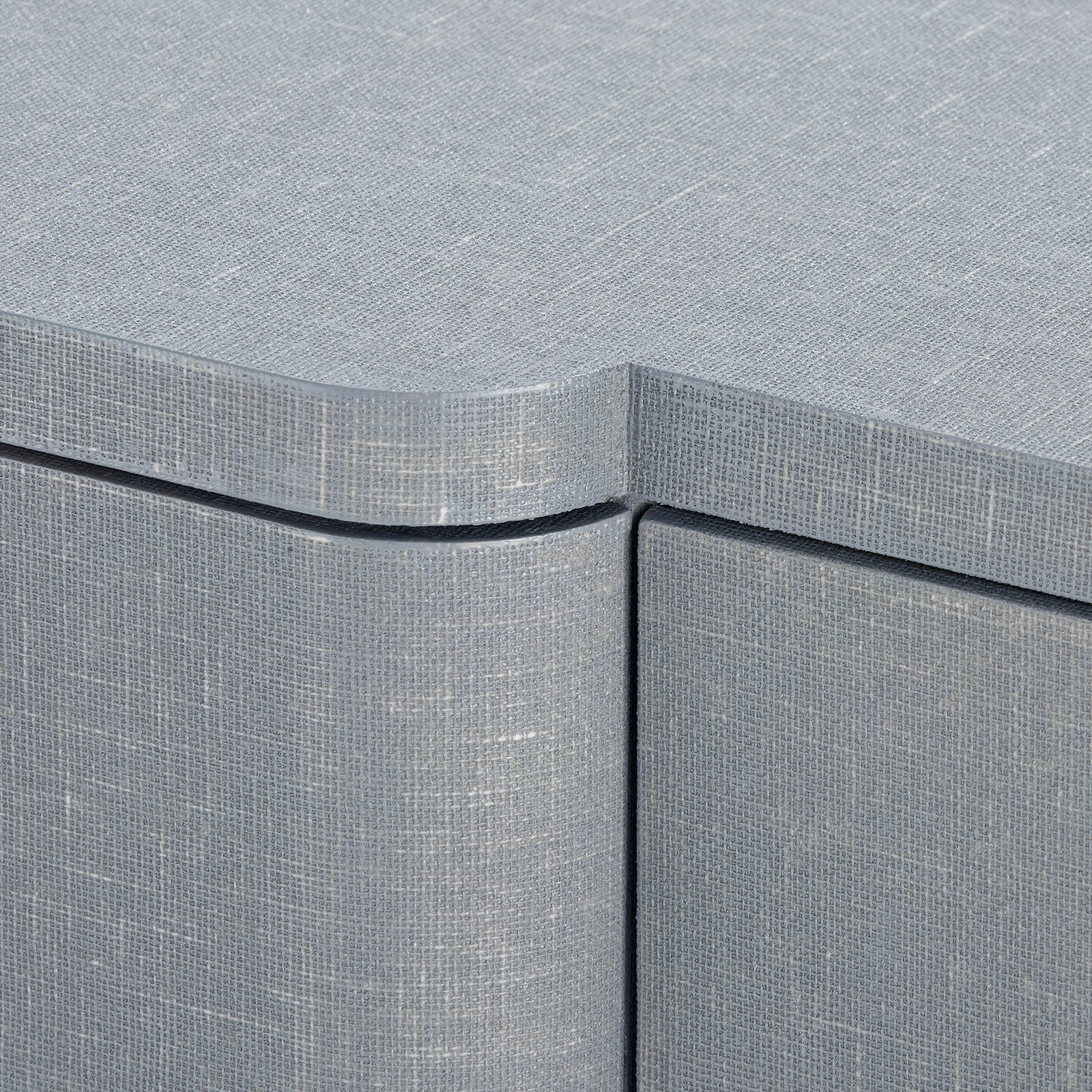The Audrey Collection is wrapped in a soft color palette of lushly textured lacquered linen, which has been seamlessly wrapped on all sides by hand to give the pieces a sophisticated, timeless and natural finish. A wide array of elegant pulls will fit into any design scheme, making a unique statement piece for your home.