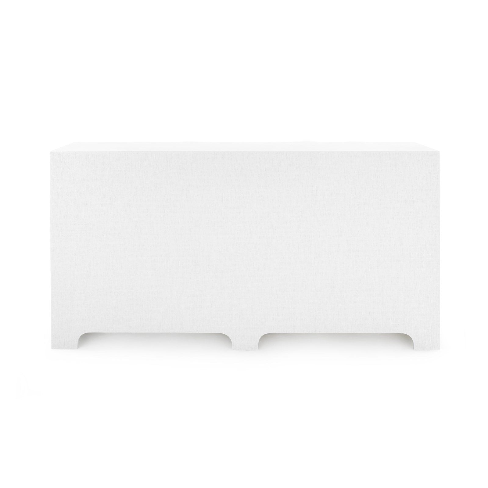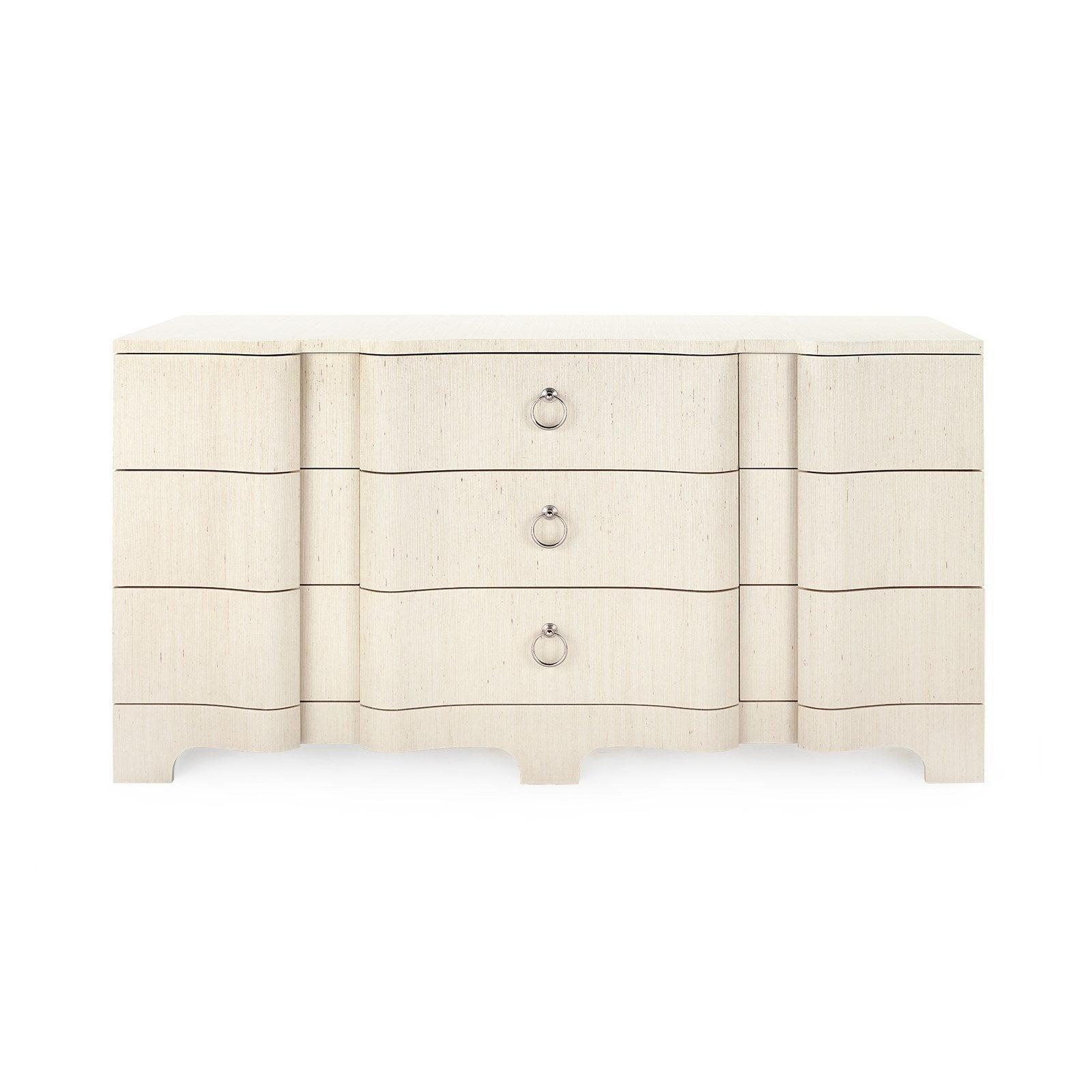 The Bardot Collection is a curvy, Art Deco-inspired design with a serpentine-front profile that imparts a sense of movement and fluidity. The lacquered grasscloth has been expertly applied by our skilled artisans so that it flows seamlessly over each cresting drawer front and around each corner. This piece appeals to those who want polished, decorated rooms.