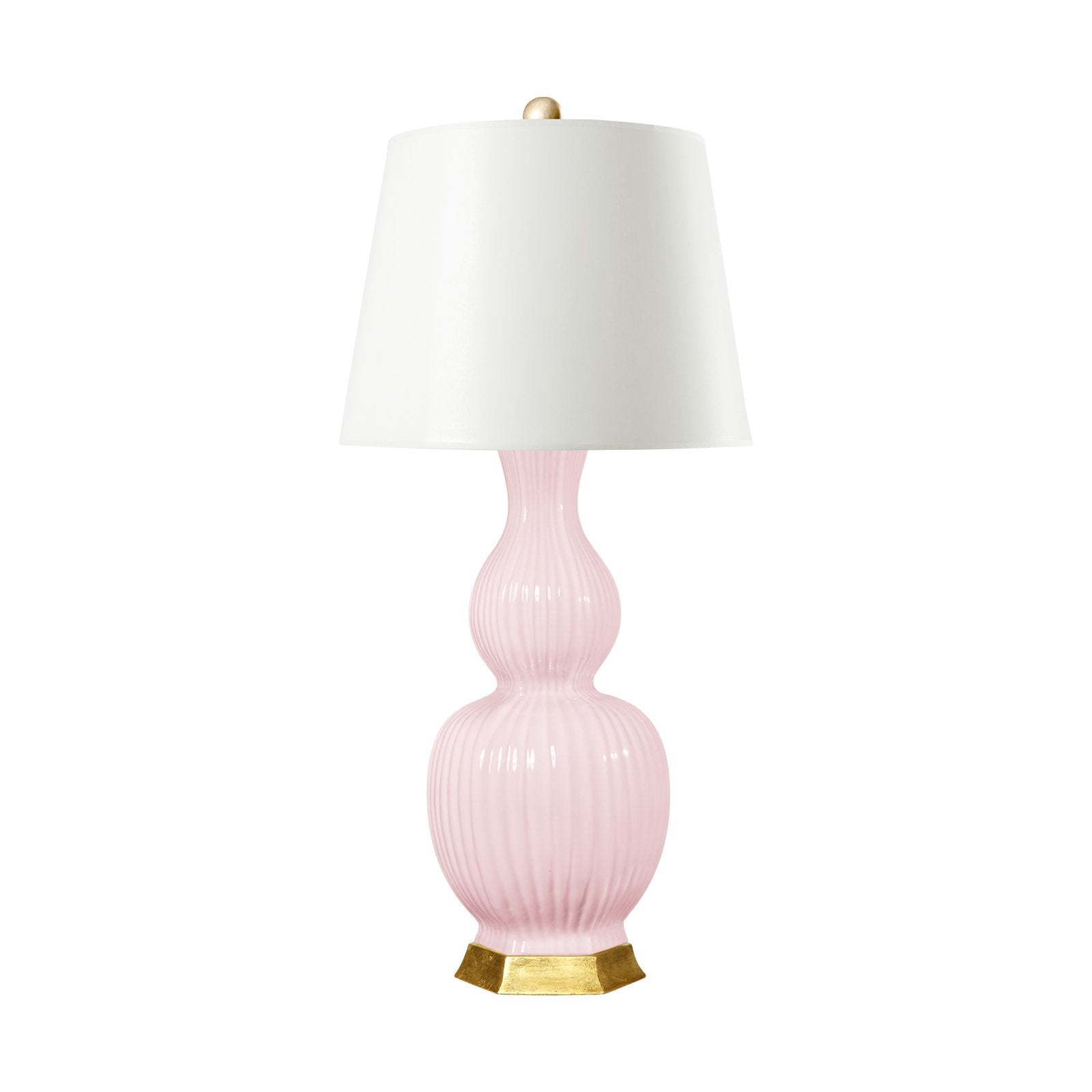 Double gourd shaped vases are among China’s oldest imperial designs (Song dynasty, 960-1279). The Delft Lamp is a very tall double gourd shape that has vertical ribs, which become smaller toward the flared top. The lamp is finished with an octagonal base and round finial in gold leaf. Pure hand made Chinese porcelain in pink, black or blue glaze. Shade sold separately.