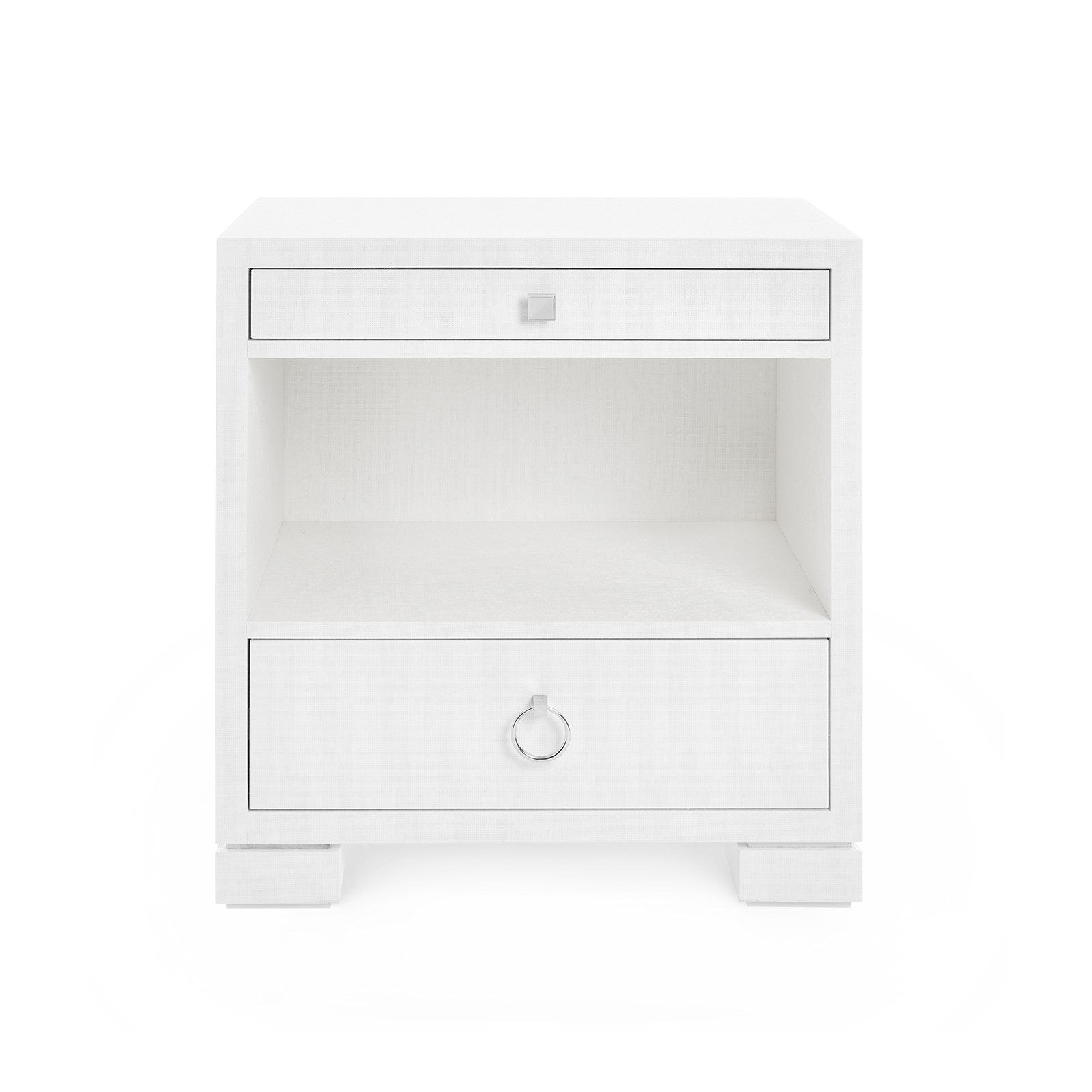 The tailored Frances Collection mixes beautiful proportion with details like graduated drawer heights, pretty reveals and unexpected hardware. The rectilinear design is grounded by tactile grasscloth in sober colors.