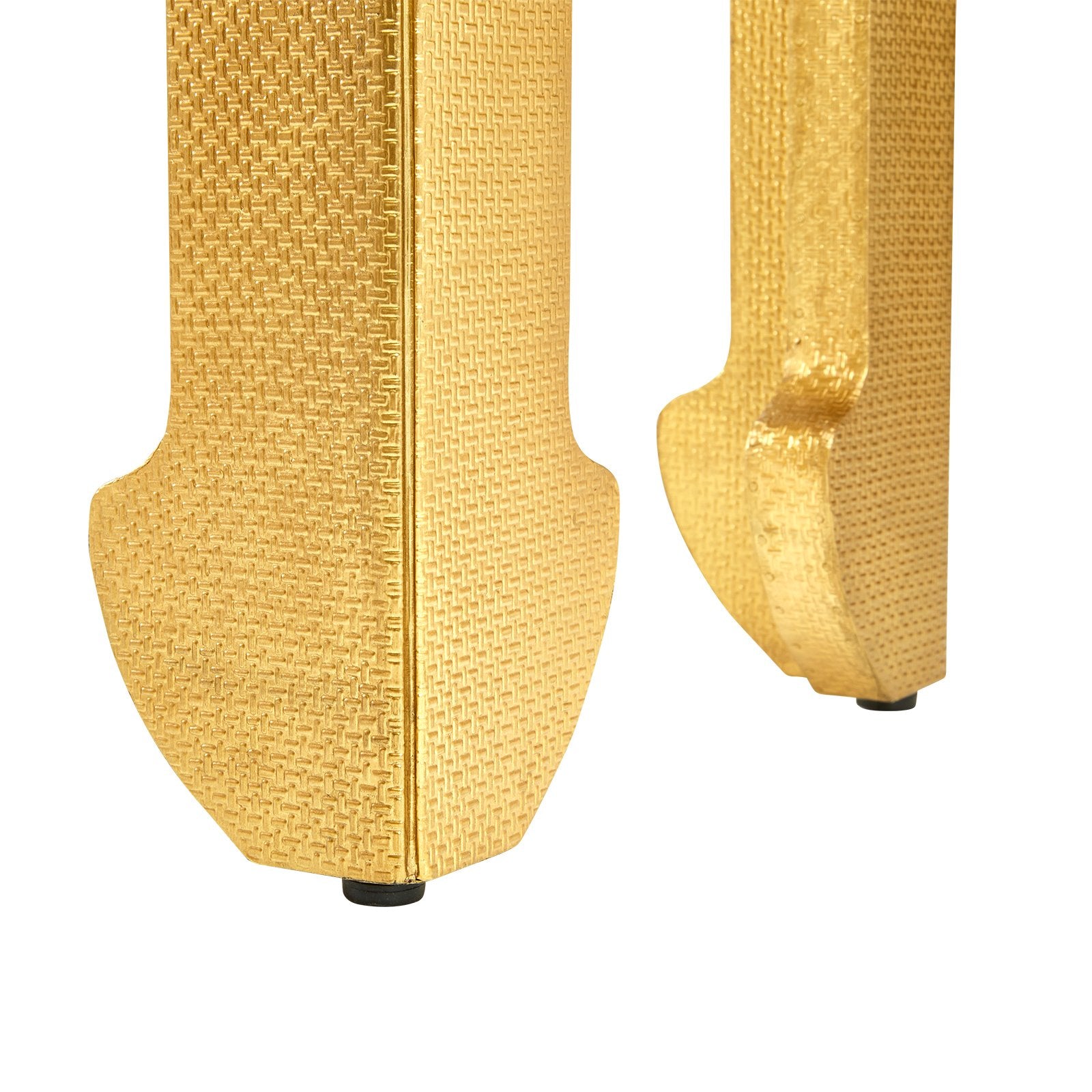 The Jaques console table is based on the Jacqui, one of our earliest and most popular collections. Like its inspiration, the Jaques features a curving apron supported by Chow-style feet. While the Jacqui is finished in hand-polished lacquer, the Jaques is wrapped in a charming repousse pattern of hand-worked brass.