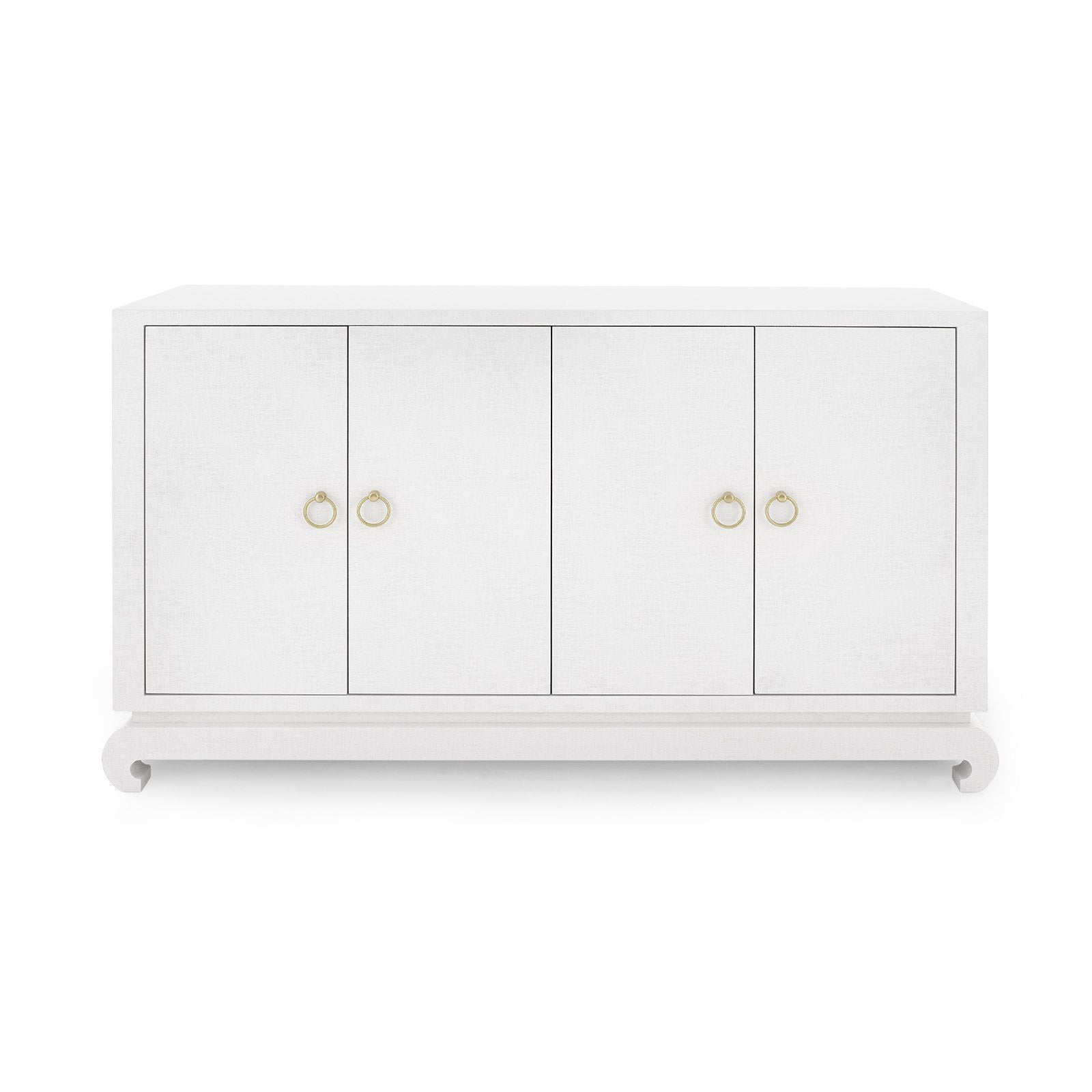 The Meredith cabinet combines a solid geometric rectangular case with a whimsical and delicate curving chow foot. This stylish piece can grace any study or dining room holding everything from AV components to dishes and glasses.