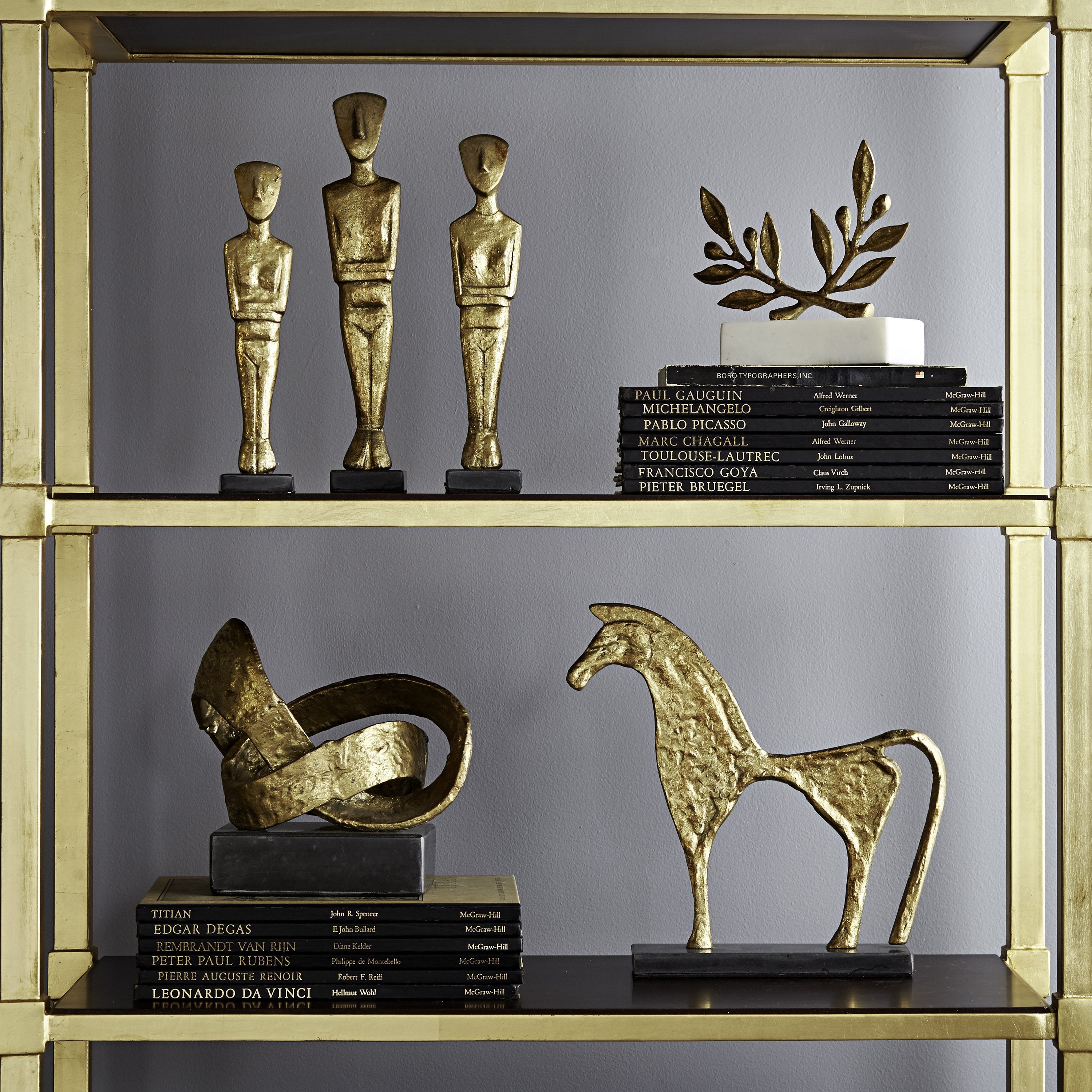 The Olive statue is a poetic depiction of crossed olive branches, which traditionally represent peace and victory. Our version is sculpted in the Art Deco style you might find at Rockefeller Center or the United Nations in Geneva. This wonderful symbol with beautifully rendered leaves and olive fruit reveals a sensitive, artful hand. Great for your peacemaker’s home or office.