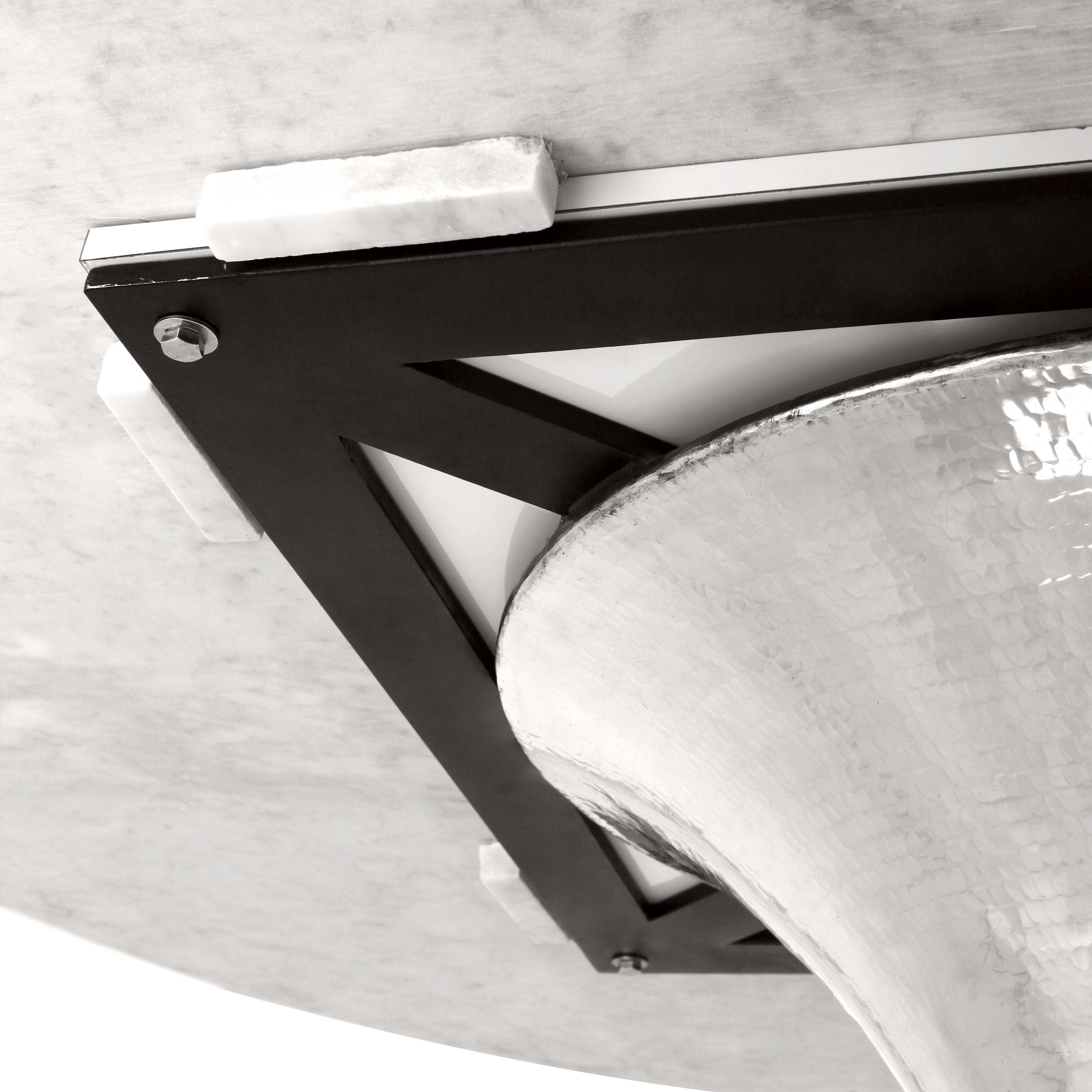The glorious Stockholm dining table has an ancient-modern vibe that reads as Scandinavian in lighter finishes and South American in warmer, darker materials. Mix and match our wood and stone tops with a selection of specially hand hammered repoussé bases. The repoussé process forms metal by all-over hammering on the metal’s reverse to yield a crafted, shimmering surface that adds design interest from floor to table top.