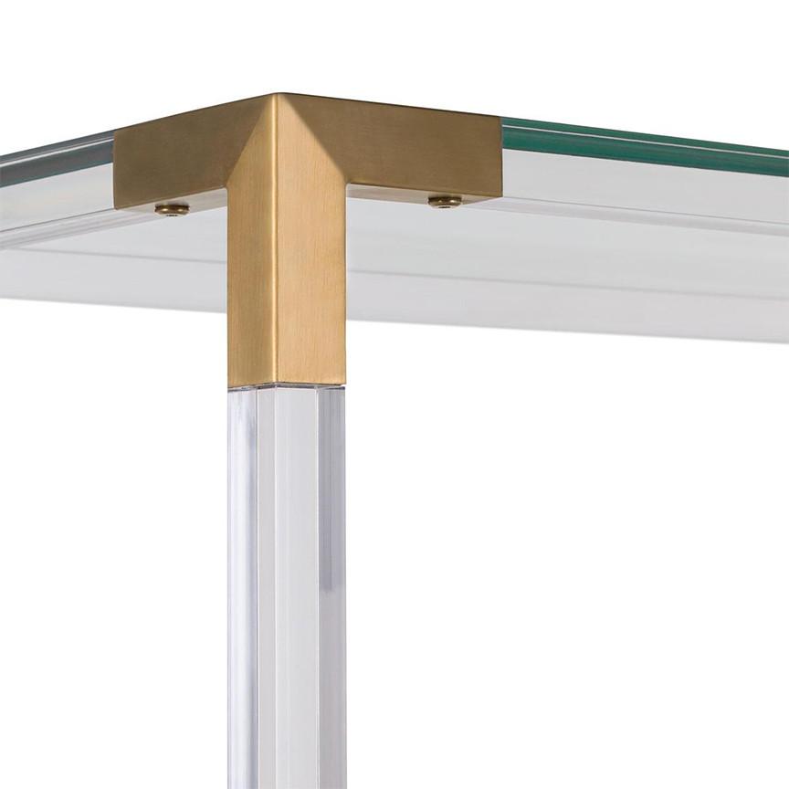 Pop the champagne. The modern romance of the Hayley Bookshelf is the height of luxury. Tall and broad shouldered, its warm bronze brass finish is elegantly juxtaposed with the cool strength of acrylic and glass. It will create an affair to remember.