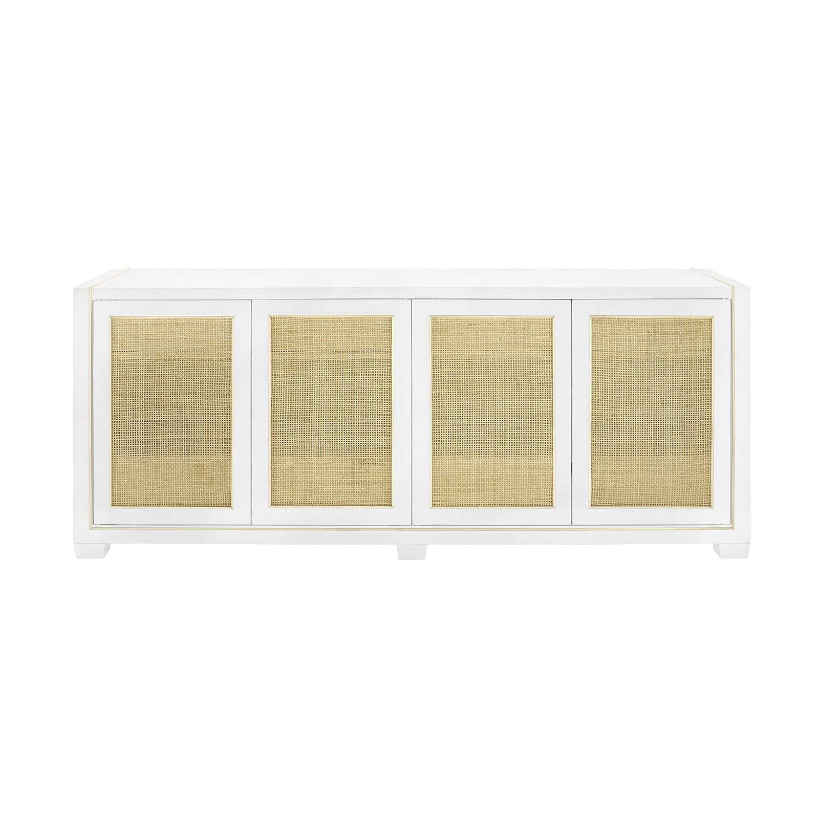The Karen Collection integrates classic Bungalow 5 artisanal features, including a lacquer finish, handwoven bleached cane, and polished brass framing and accents. This harmonious combination of elements allows each piece to anchor a wide spectrum of interior decorating styles