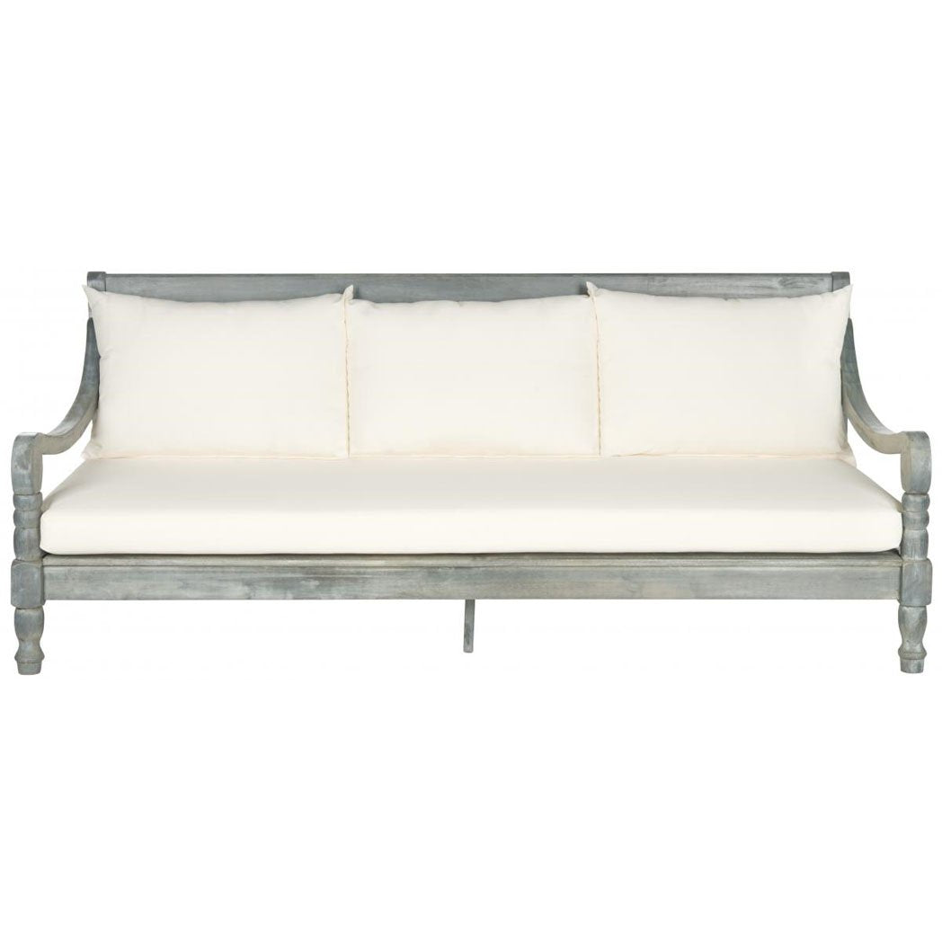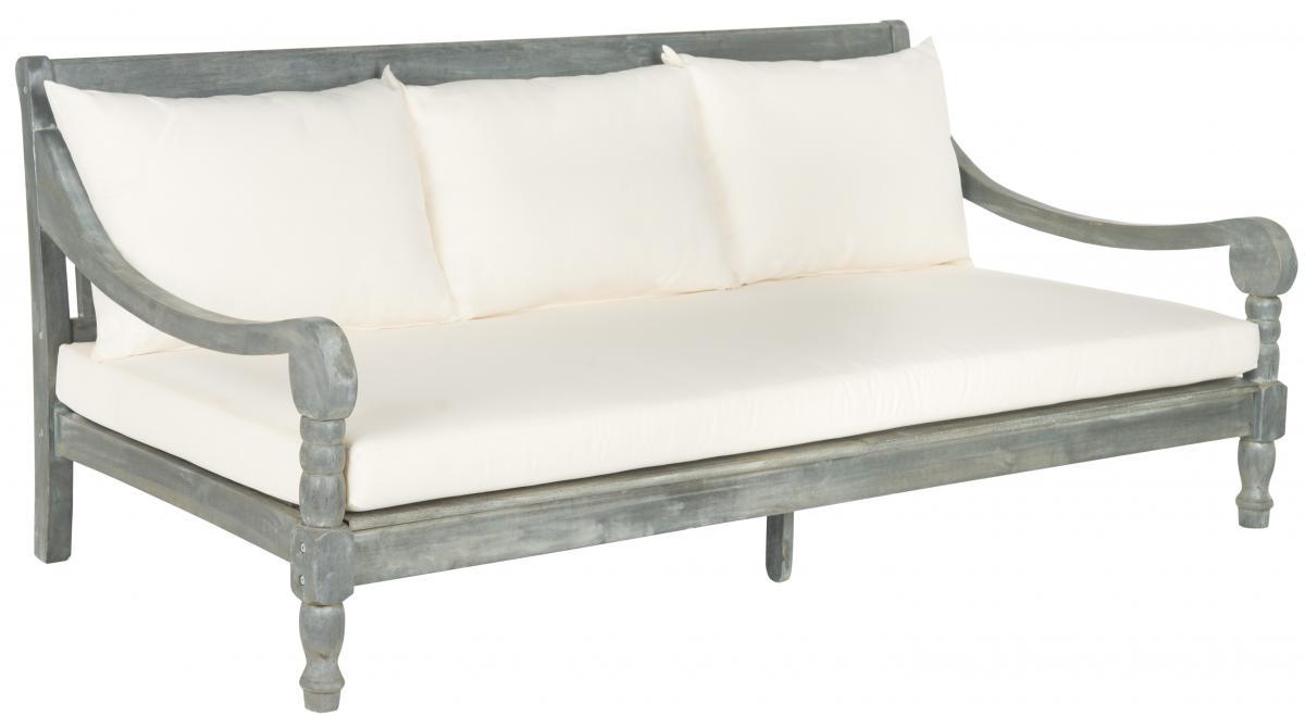 The ultimate indulgence, the Pasadena daybed recalls the casual elegance of a bygone era with generous proportions and classic British styling. Crafted of eco-friendly ash grey acacia wood with beige all-weather cushions, it encourages luxe lounging.