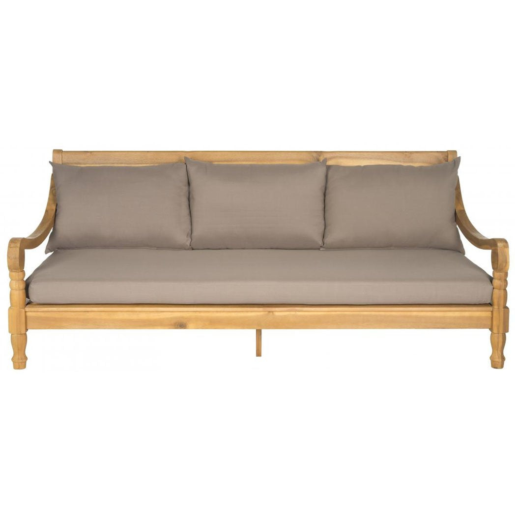 The ultimate indulgence, the Pasadena daybed recalls the casual elegance of a bygone era with generous proportions and classic British styling. Crafted of eco-friendly acacia wood in teak brown with taupe all-weather cushions, it encourages luxe lounging.