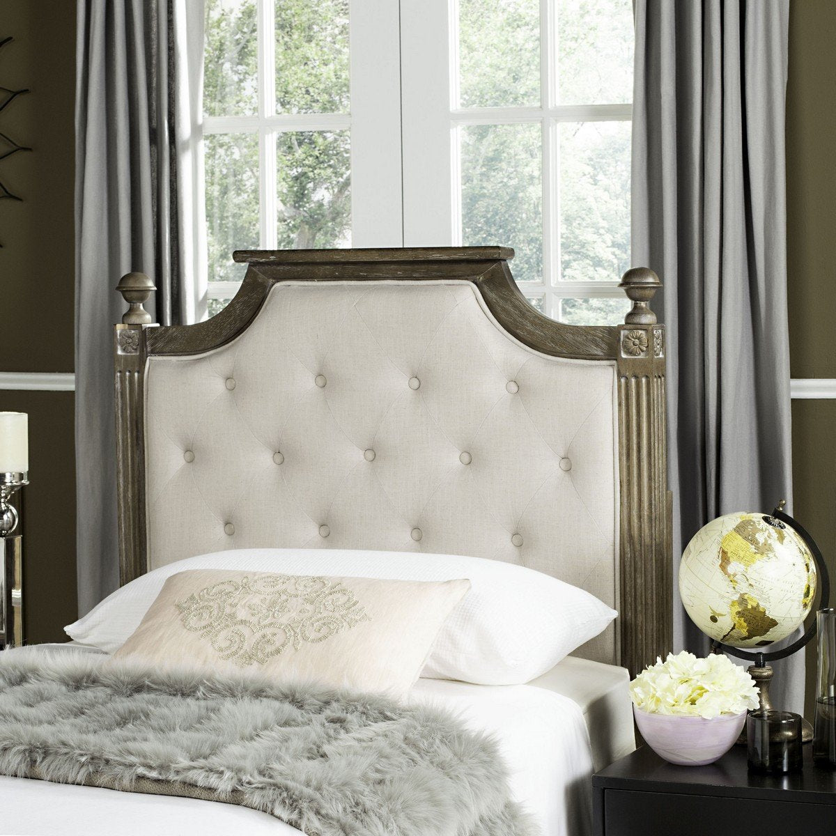 The fine antiques in a famous boutique hotel in Zurich inspired the finely crafted woodwork of this regally appointed twin headboard. A designer favorite, it’s upholstered with tufted linen in a timeless beige palette to complement any tasteful décor.