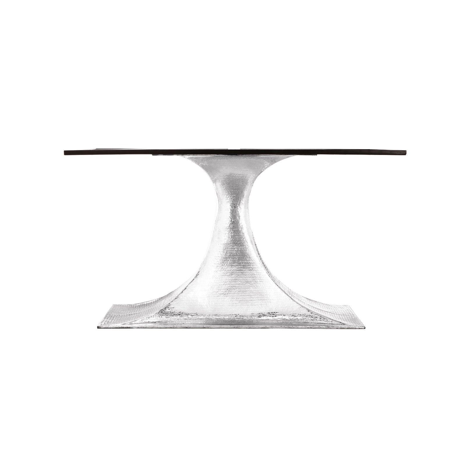 The glorious Stockholm dining table has an ancient-modern vibe that reads as Scandinavian in lighter finishes and South American in warmer, darker materials. Mix and match our wood and stone tops with a selection of specially hand hammered repoussé bases. The repoussé process forms metal by all-over hammering on the metal’s reverse to yield a crafted, shimmering surface that adds design interest from floor to table top. Available in bronze, nickel, and brass. Bases and tops sold separately.