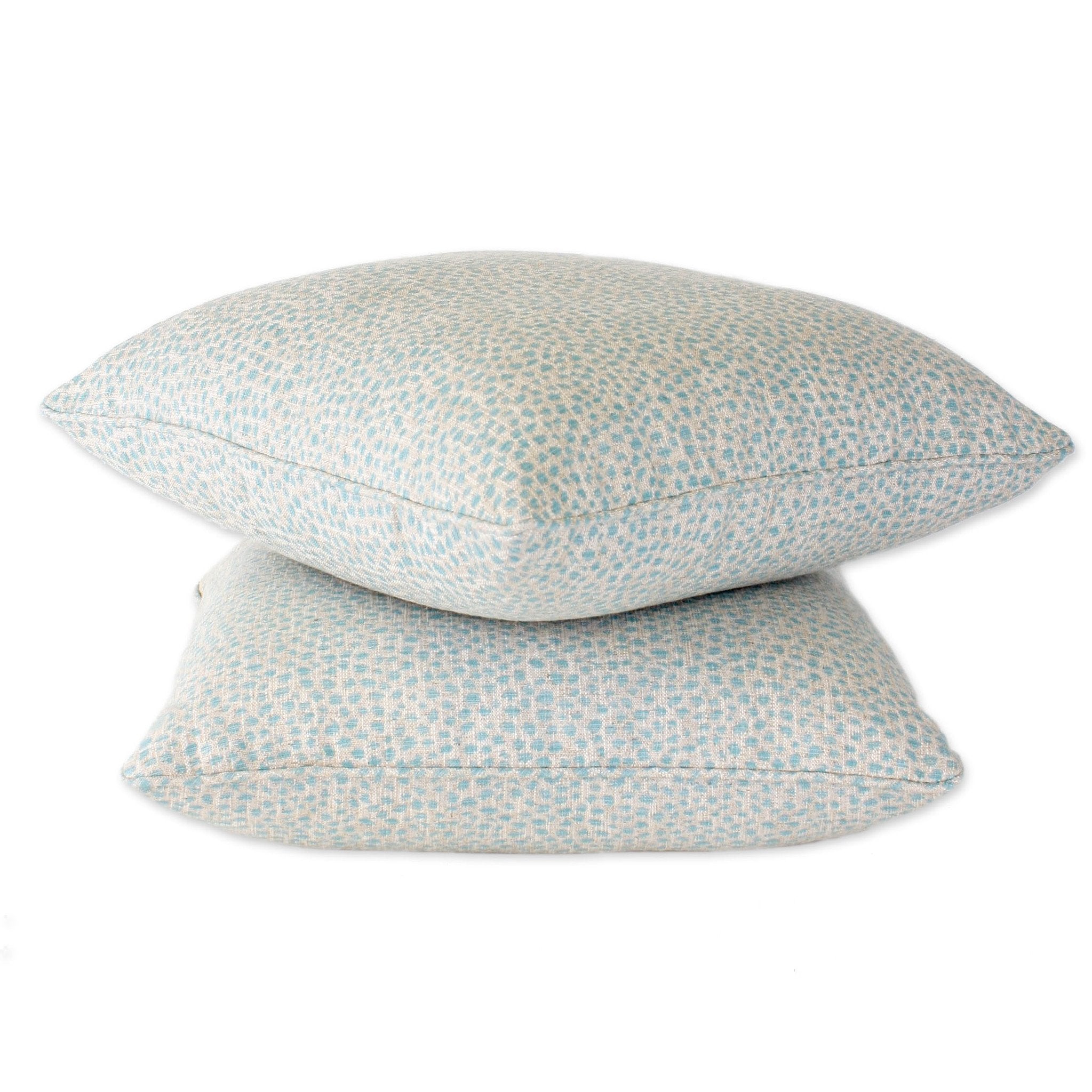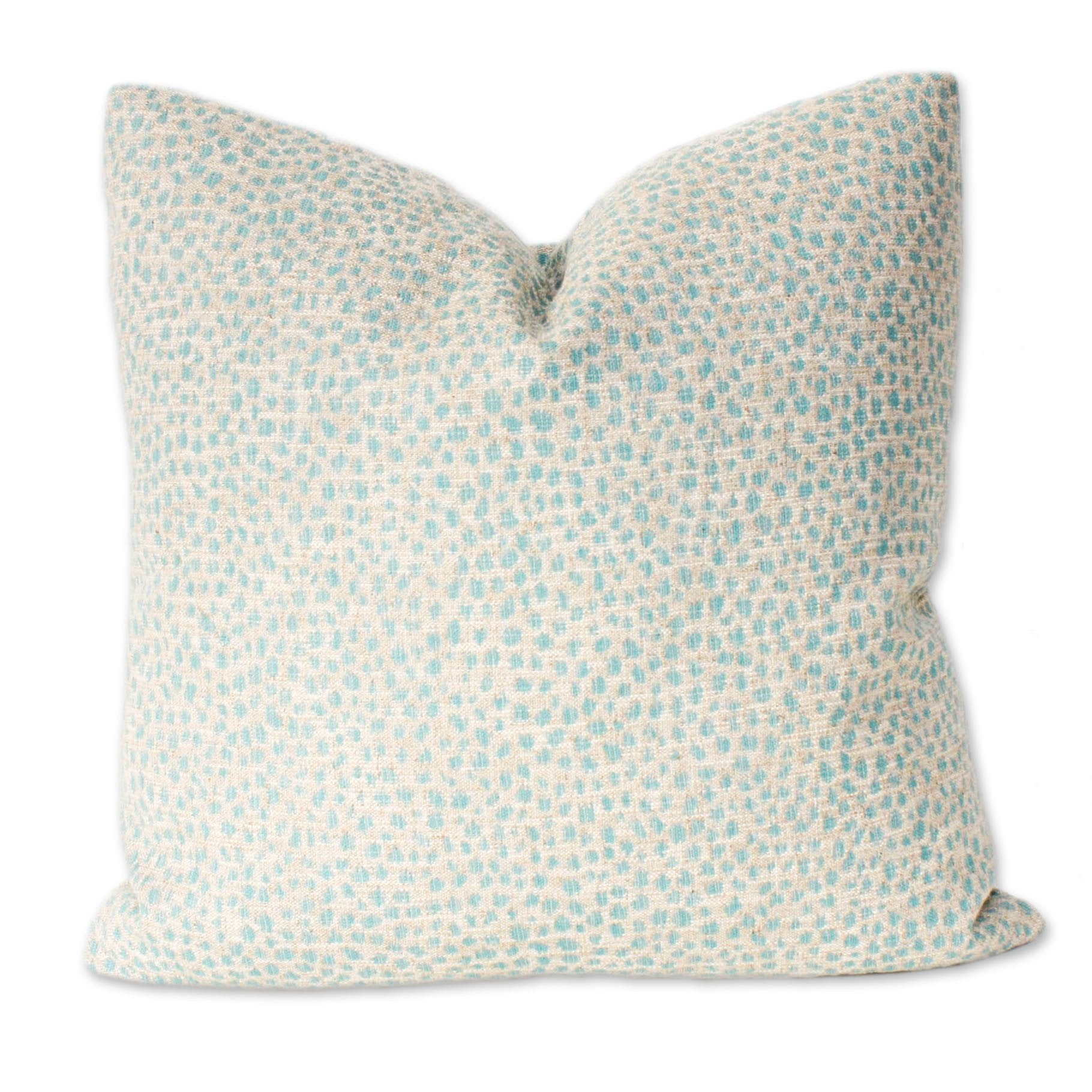 Add a pop of color to your space with this fun animal-print pillow! Surprisingly versatile, the Aquamarine Cheetah pillows look great mixed and matched with both solids and patterns and is one of our favorite fabrics to date. Looking for a different color? This pattern is also available in Pink and Umber.