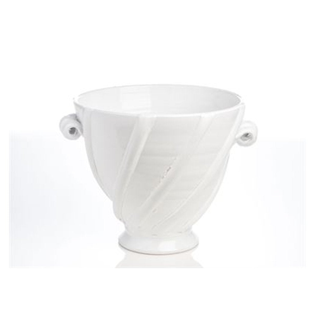 The ribbon accents on this handmade ceramic cachepot give it an elegant and classy touch. Handmade in Italy.