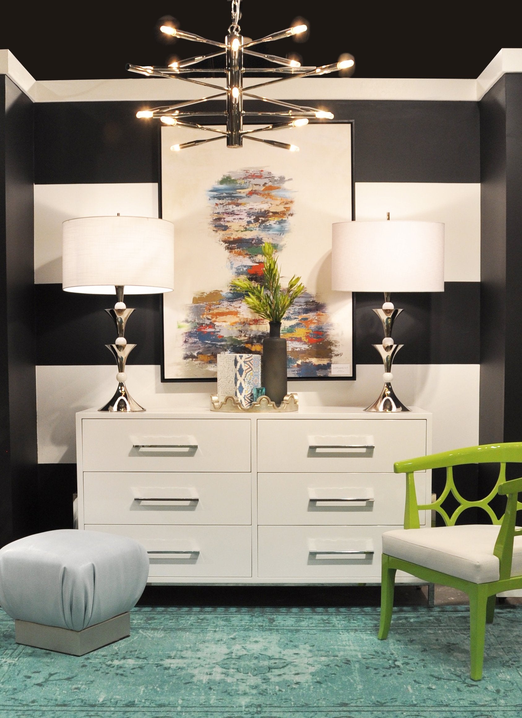 Barrel back lacquer chair with white linen cushion.