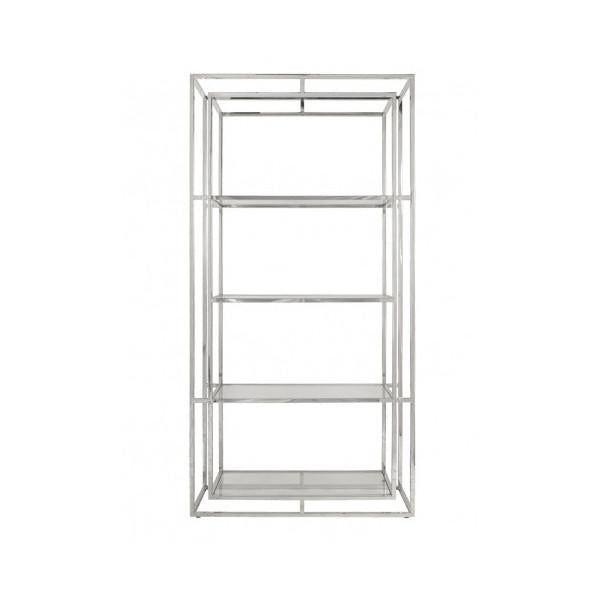 The Worlds Away Fletcher etagere combines edgy with sophistication. An open geometric frame stuns with dimensional appeal, while sleek glass shelves offer elegant surfaces for display. A gleaming finish completes the look with a metallic sheen.