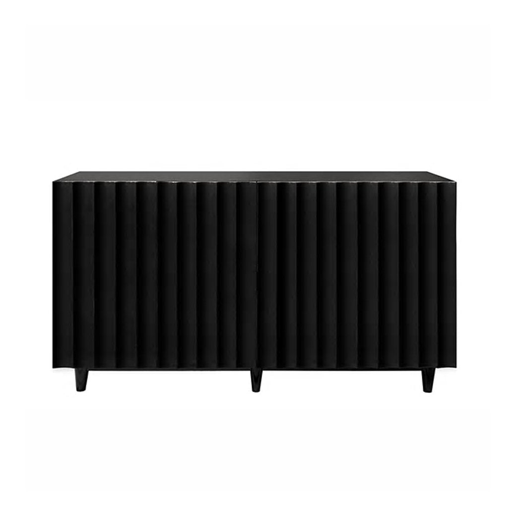 White or black lacquer 4 door scalloped front cabinet with component holes in back.